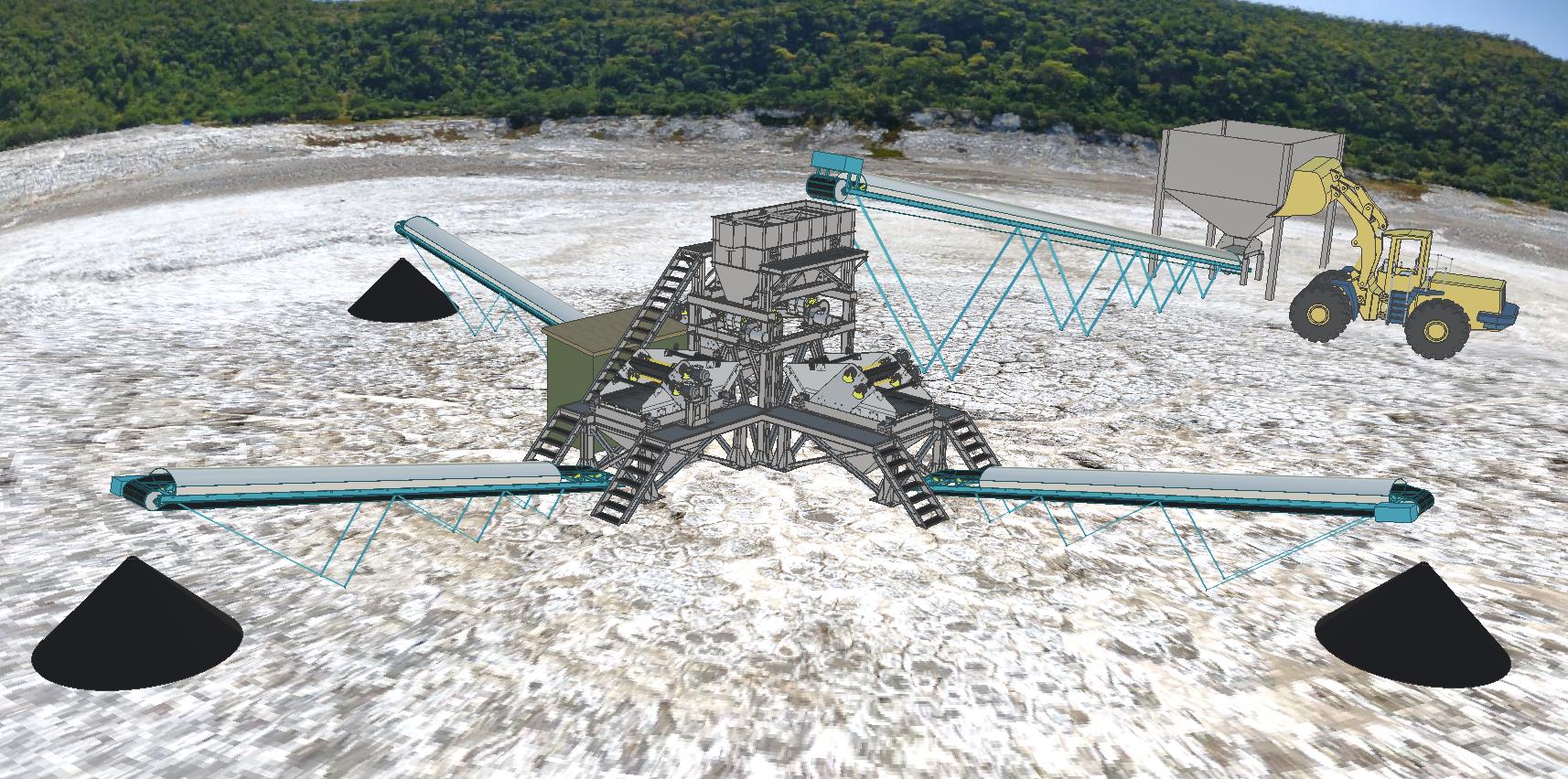 Комплекс состоит из дробильно-сортировочного и обогатительного участков. Дробильно-сортировочный участок предполагает двух-стадийное дробление, вывод из процесса обогащения класса «минус» 2 мм ввиду его низкой ликвидности и подачу исходного материала 2-10 ... 40 мм на модуль обогащения. Оптимальная крупность исходного определяется по результатам лабораторных исследований на обогатимость. Модуль обогащения производит разделение исходного с получением трех продуктов: концентрат 1-го сорта, концентрат 2-го сорта и хвосты. Как опция возможна установка подмодуля перечистки для доводки концентрата 2-го сорта до 1-го. Все зависит от ограничивающих параметров: плановая рентабельность и допустимое содержание Mn на борту.
